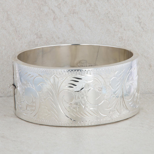Sterling Silver 30mm Wide Diamond Etched Bangle Bracelet, 57.0g