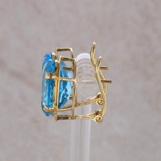 14k Yellow Gold Blue Topaz Oval Stud Earrings