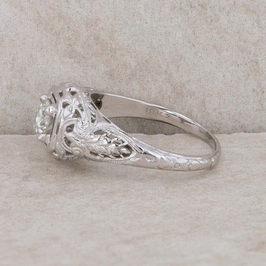 18k White Gold Diamond Filigree Cutout Style Engagement Ring