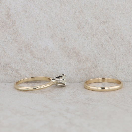 14k Yellow Gold Round Solitaire Engagement Ring + 14k Yellow Gold Band