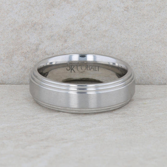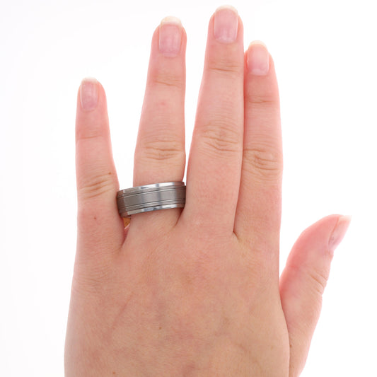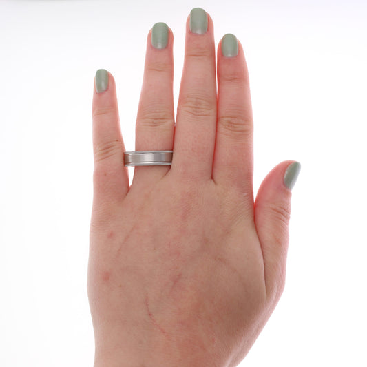 14k White Gold Men's Satin Textured Edges Band 6.22g