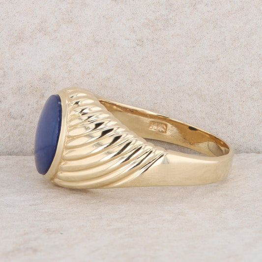 14k Yellow Gold Men's Oval Synthetic Star Sapphire Ring