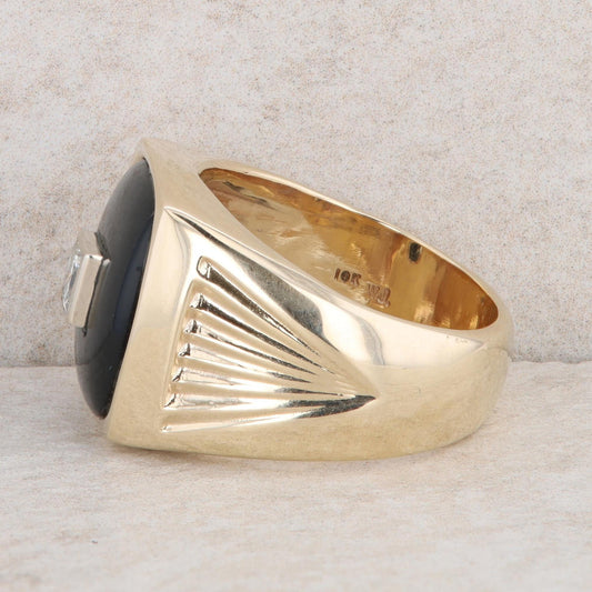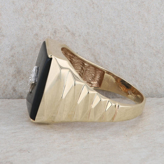 10k Yellow Gold Men's Onyx and Diamond Ring