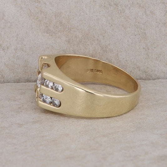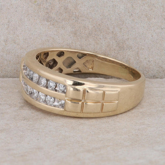10k Yellow Gold Diamond Double Row Brick Style Men's Ring