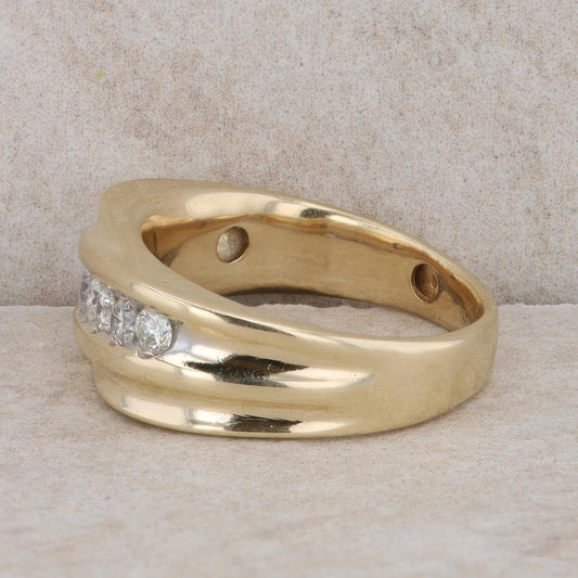 14k Yellow Gold Diamond Swirl Style Men's Ring