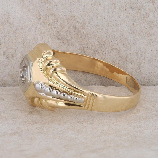 14k Yellow Gold Two-Tone Hexagon Diamond Men's Ring
