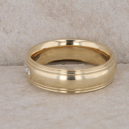 14k Yellow Gold Men's 3 Diamond Beveled Edge Band