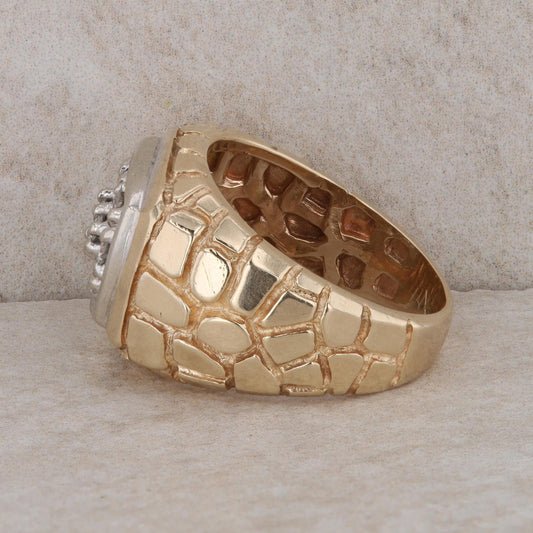 14k Yellow Gold Men's Nugget and Diamond Ring