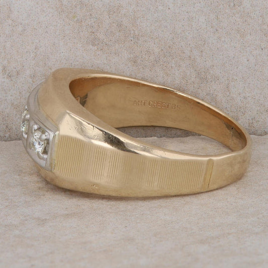 14k Two-Tone Gold 3 Round Diamond Artcrest Men's Ring