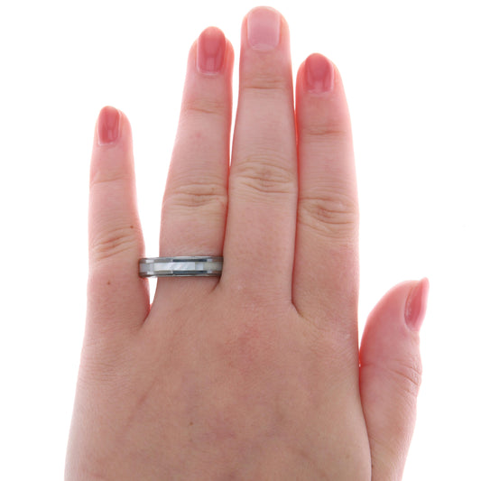 Men's Tungsten Beveled Edge Band with Mother of Pearl Inlay