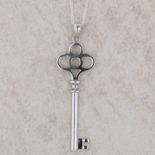 Sterling Silver Key Pendant with Sterling Silver Cable Chain