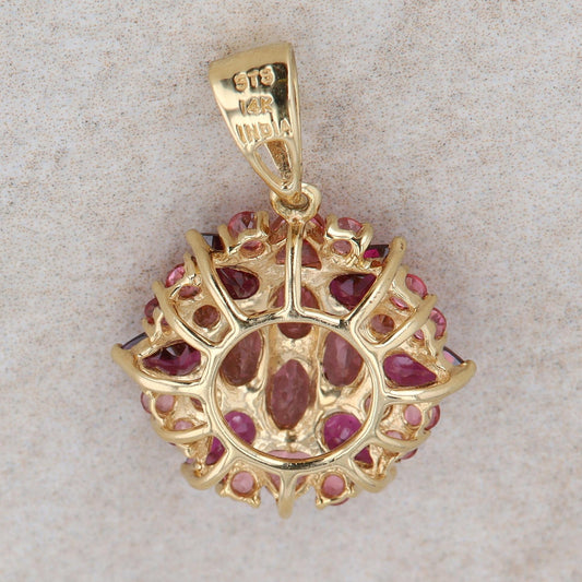 14k Yellow Gold Pink Tourmaline and Garnet Cluster Pendant