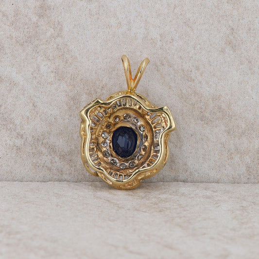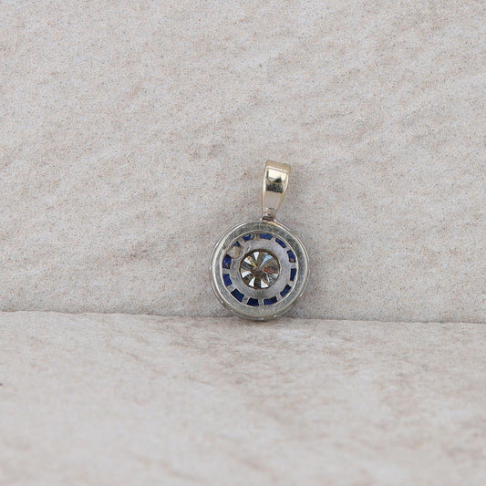 14k Yellow Gold Diamond and Sapphire Halo Pendant