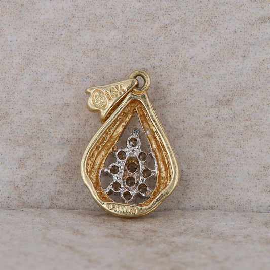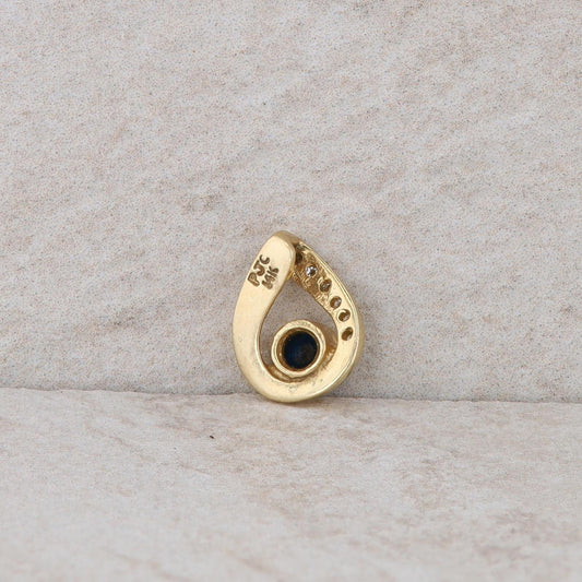 14k Yellow Gold Diamond and Sapphire Teardrop Framed Pendant