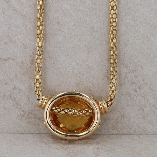 14k Yellow Gold Citrine and Diamond Pendant with 16" chain