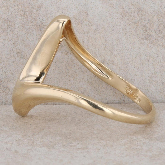 14k Yellow Gold Abstract V Shape Curved Ring, 3.4g