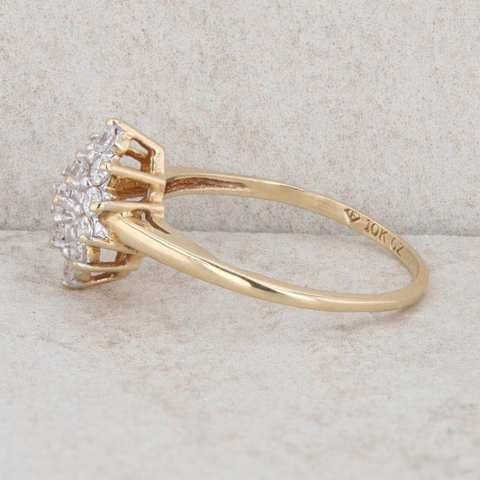 10k Yellow Gold 3/8 Carat Diamond Marquise Shaped Cluster Ring