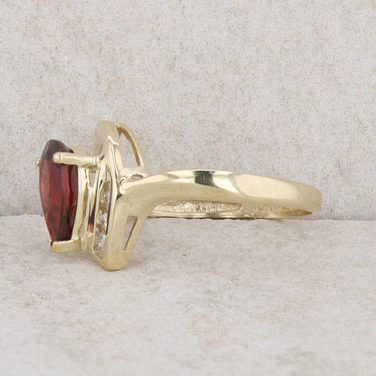 10k Yellow Gold Pear Mozambique Garnet & Diamond Curved Ring