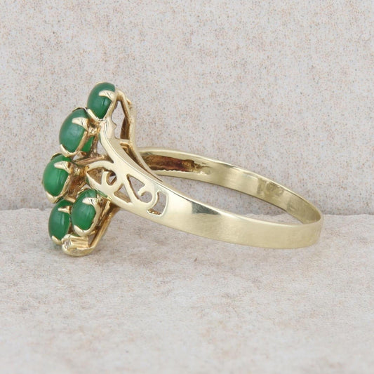 14k Yellow Gold Cabochon Jade & Diamond Halo Floral Cutout Shank Ring