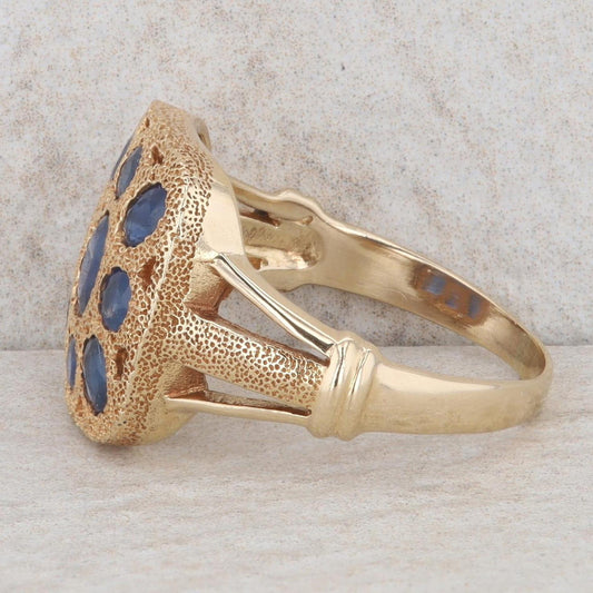 14k Yellow Gold Round & Oval Sapphire Textured Square Ring