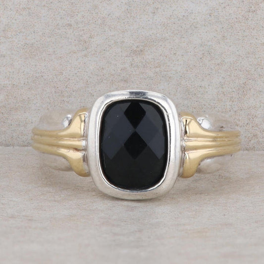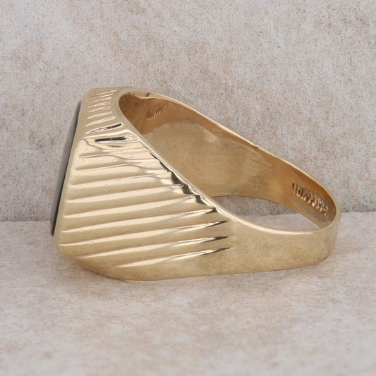 10k Yellow Gold Cushion Onyx Ribbed Texture Wide Ring