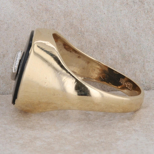10k Yellow Gold Cushion Onyx & Diamond Drilled Wide Signet Style Ring