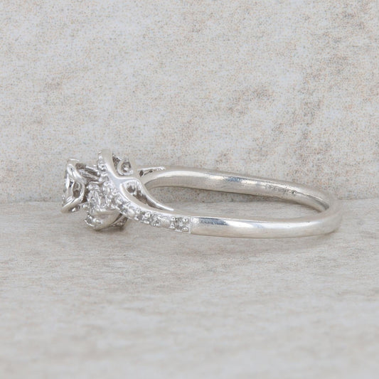 Sterling Silver Diamond Cluster Twist Engagement Ring