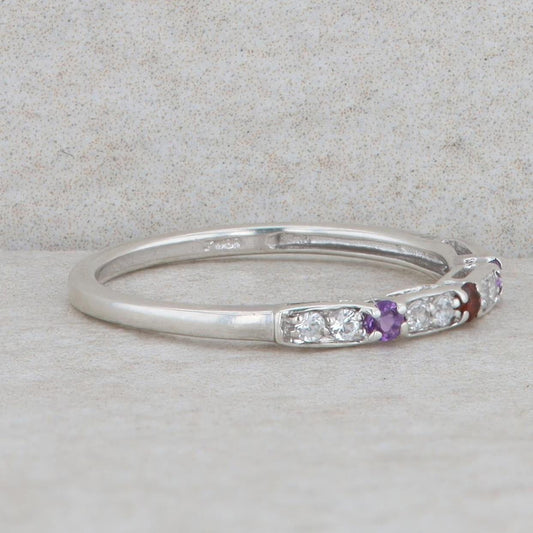 Sterling Silver Amethyst, Garnet & Cubic Zirconia Alternating Band