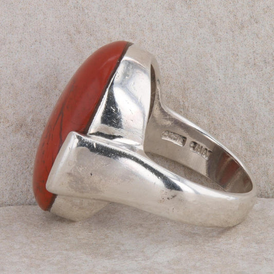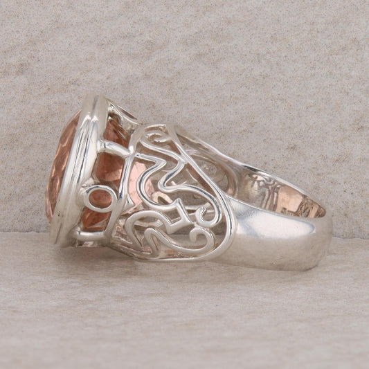 Sterling Silver East West Set Peach Colored Glass Filigree Ring