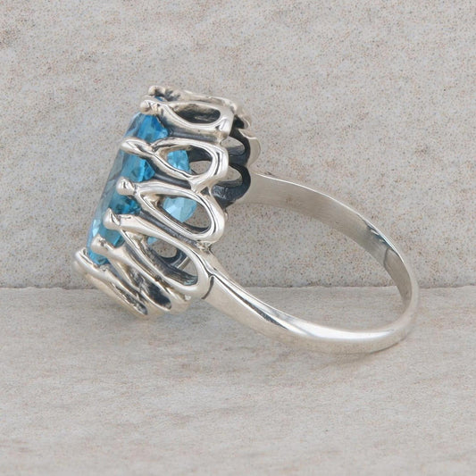 Kabana Sterling Silver Oval Swiss Blue Topaz Filigree High Set Ring
