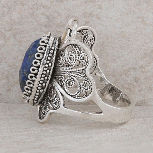 Sterling Silver Oval Checkerboard Cut Lapis Butterfly Ring