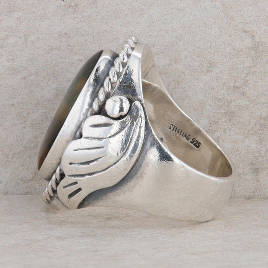 Sterling Silver Oval Cabochon Tigers Eye Winged Rope Frame Ring