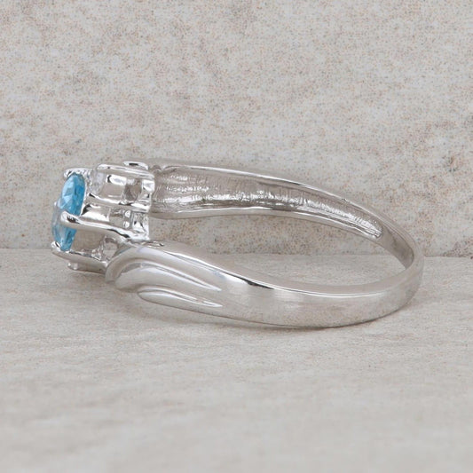 Sterling Silver Oval Blue Topaz & Round Cubic Zirconia Bypass Ring