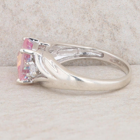 Sterling Silver Cushion Mystic Topaz & Cubic Zirconia Swirl Ring