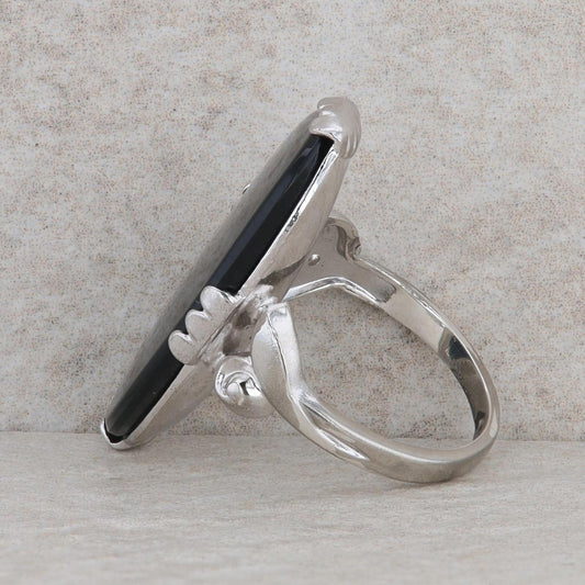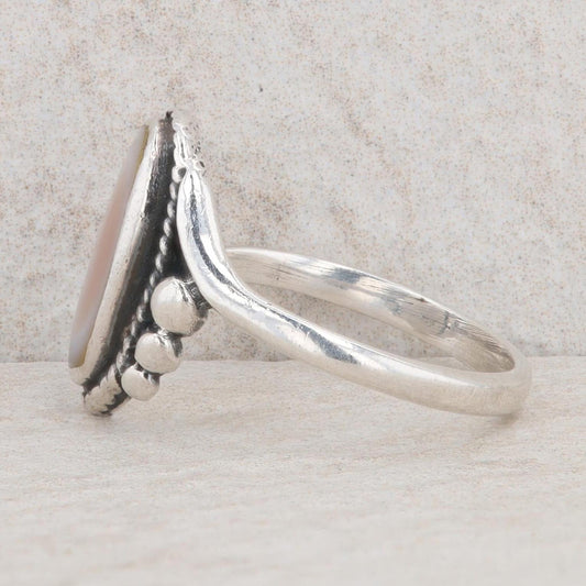 Sterling Silver Oval Mother Of Pearl Bypass Ring