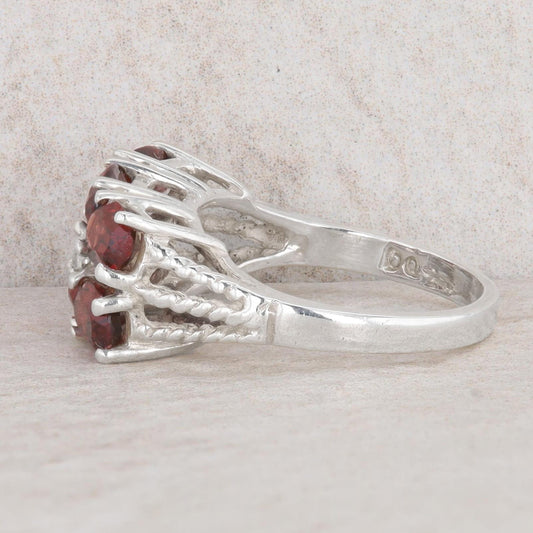 Sterling Silver JED Vintage Oval Garnet Triple Braided Shank Ring