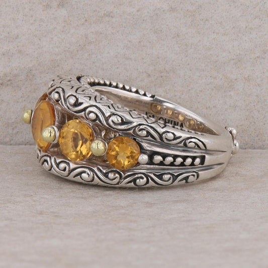 Barbara Bixby Sterling Silver & 18k Yellow Gold 5 Round Graduated Citrine Band