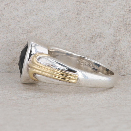 Lorenzo Sterling Silver & 18k Yellow Gold Bezel Set Onyx Ring