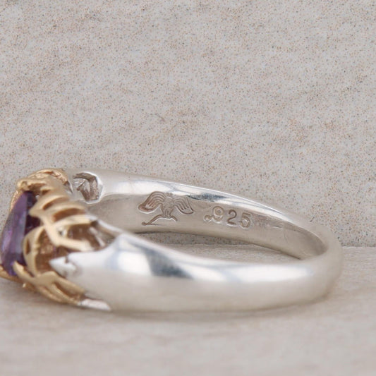 Michael M. Sterling Silver & 14k Yellow Gold Purple Glass Legend of Zelda Ring