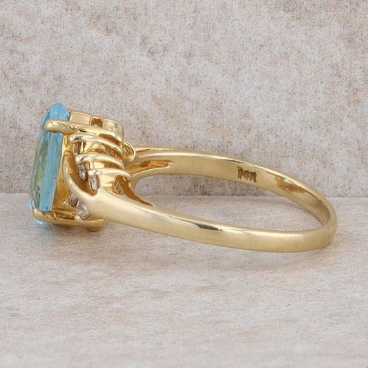 14k Yellow Gold Blue Topaz and Diamond Ring