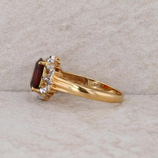 14k Yellow Gold Mozambique Garnet and Diamond Ring